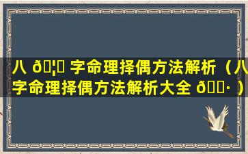 八 🐟 字命理 🌴 女性择 🦉 偶指导书