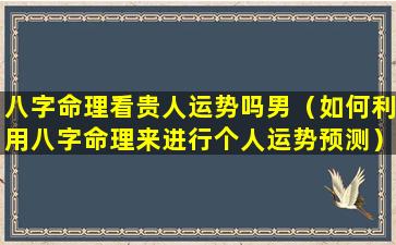 如何利用八字命 🦅 理进 🐺 行个人运势预测