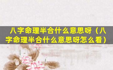 八字命 🐘 理中的“半合”是指命局中两个地支相差六位,但,不是相冲而是一种互相生扶的关系半合。有两种类型: