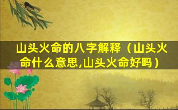在八字命理学中,"山"头,火命,是一种命格指出生时八字中五行火过旺或日柱干支五行属火的人。具,体而言符合以 🐺 下 🐈 条件之一的人称为山头火命: