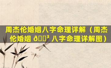 周杰 🌾 伦八字婚姻详 🌼 解 🦆