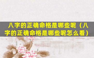 八字 🦉 算命中,正确的命 🐡 格分 🕊 为以下几类: