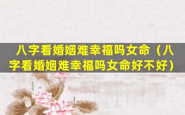 八字看婚 🦊 姻难幸福吗女命不好?