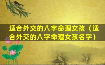 需要注意的是,八,字,命理仅供参考具体能否胜任外交 🐈 工作还需要综合考虑其 🐺 他因素如个人能 🐶 力、性、格学历等。