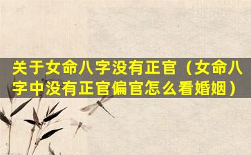 命理学中对于女命八字无正官 🐯 偏官 💐 的婚姻解读