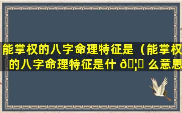 能掌权的八字 🐧 命理特征