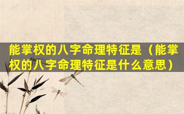 具有掌权能力的八字命 🐞 理特征: