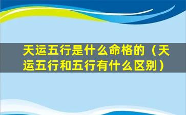 无法根 ☘ 据提供的文本信息确定天运五行的命格。