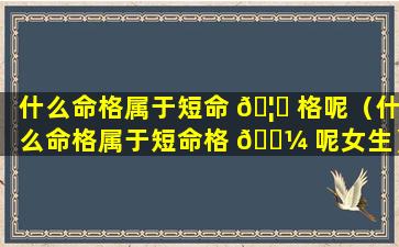 八字 🌾 命理中认为以下命格属于短命格: