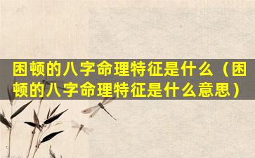 困顿 🐅 的 🕸 八字命理特征 🦋 :