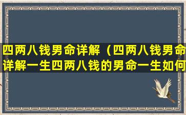 四两八钱男命是一个总体运势较好的命格。他们聪明伶俐,勤,奋,努。力,事。业,有。成,财运,旺,盛。感情方面桃花旺盛婚姻幸福健 🕷 康状况良好贵人运较好只要顺应运势积极进取便能顺风顺水一生顺遂