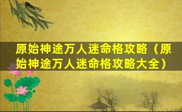 原始神 🐒 途万人迷命 🌳 格攻略大全